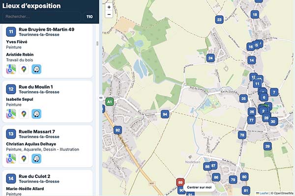 Un plan interactif est accessible en ligne (5 €). Basé sur le principe du GPS, il permet de vous guider à partir de l’endroit où vous vous trouvez (votre domicile, un accueil, un lieu d’expo) vers le point que vous voulez rejoindre (un accueil, une expo, le Beau Vignet, l’église de Tourinnes pour le concert ou le spectacle…), et ainsi de suite de lieu en lieu. Avec ce service payant, vous ne recevez pas de plan par mail : tout se passe en ligne.