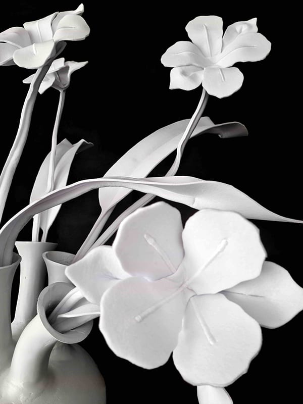 Geïnspireerd door de plantenwereld verwijzen ze tegelijk naar de reële natuur en naar een zacht, kleurrijk imaginair. In boeketvorm of als monumentale sculptuur: steeds bewaren ze het gebaar van het vegetale, zijn verhoudingen en zijn aanwezigheid.