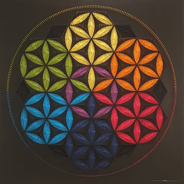Foto: ‘Flower of Life’ – Fiber Art – 110 × 110 cm – Geselecteerd voor de 122e Salon d’Automne – Parijs.