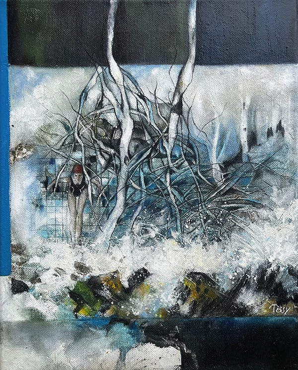 Ik verliet mijn baan als kunstdocent om mij aan mijn passie te wijden. Ik schilder vooral op doek en voeg soms figuratieve elementen toe aan een abstracte compositie. Ik experimenteer graag met ongewone kleur- en materiaalcombinaties die ik laag na laag aanbreng. Zo ontstaan diepte en dynamiek, en wordt de kijker uitgenodigd zijn eigen verhaal te vinden. Met mijn beelden wil ik een emotioneel verhaal, een schrijnende realiteit of een droomwereld overbrengen. Ik wil warmte, inspiratie en hoop oproepen, in een wereld die dat nodig heeft.