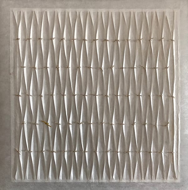 De veelzijdigheid van washi boeit mij bijzonder: het kan glad of vezelig zijn, dik of flinterdun. Je kunt het op duizend manieren bewerken: snijden, scheuren, vouwen, naaien… Het blijft mij inspireren door zijn kracht en tijdloze schoonheid.