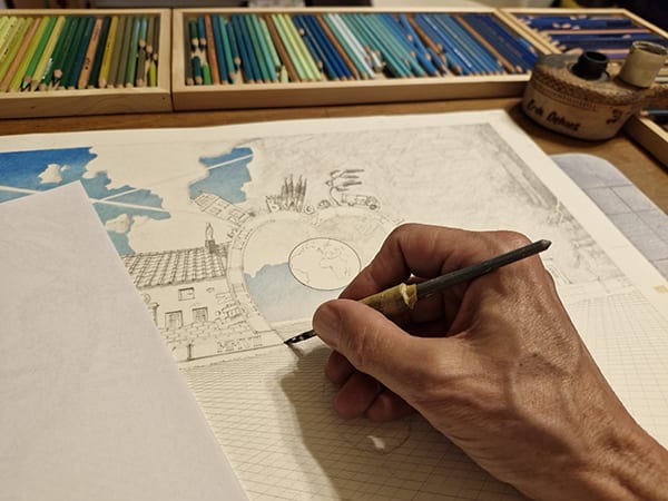 Erik Dehaes maakt tekeningen in potlood en chinese inkt, linosnedes en decoratieve houtsnijwerken. Een selectie daarvan zal door hem uitgekozen worden voor deze editie van les Fêtes de la Saint-Martin.