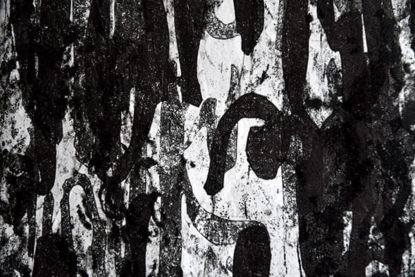 SCHRIFTEN VAN SCHORS: monotypes van schors, overdrukt met in lino gegraveerde teksten.