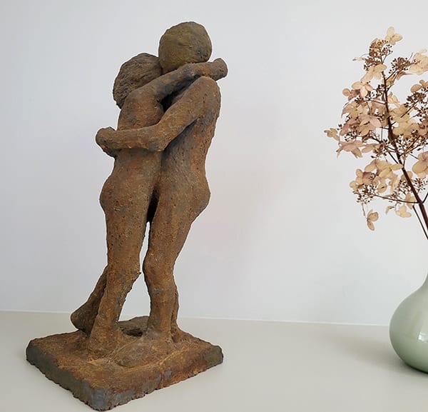 Als kleibeeldhouwster maak ik vooral figuren die tussen twee werelden bewegen. Enerzijds tijdloze, poëtische, strakke beelden waarin de tijd lijkt stil te staan.