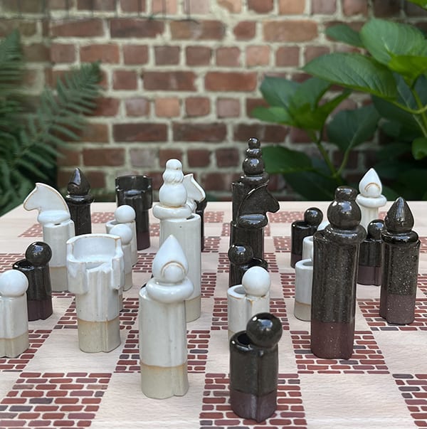 Mijn werk bestaat uit het gebruiken van verschillende technieken en materialen, zoals keramiek, modelleren en hout, die ik ensceneer in mijn schaakspelen, damspelen, mini-kerststallen, vogels en decoratieve objecten.