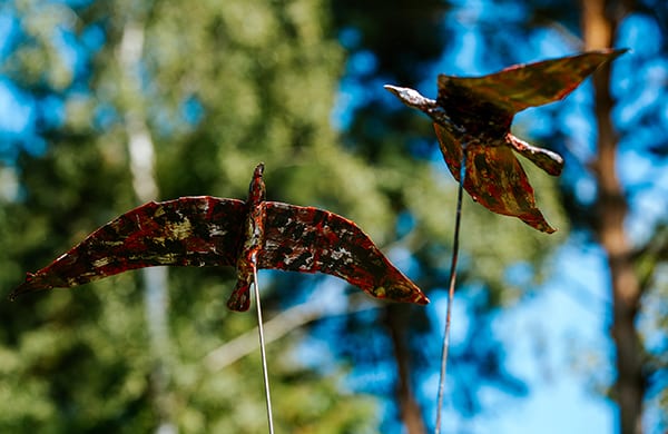 Vorig jaar gaven mijn beelden leven aan de mannen en vrouwen van de woestijn. Dit jaar blijf ik hars verkennen, verrijkt met textiel, hout, metaal en papier, om een door de natuur geïnspireerde wereld te creëren: vogels, bomen en bloemen krijgen onder mijn handen vorm en kleur.