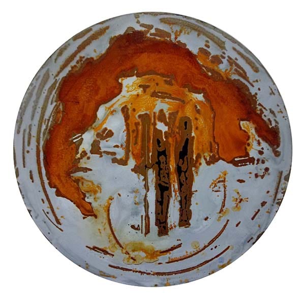 Afkomstig uit Charleroi vergezelde ik mijn vader in zijn vrachtwagen langs de gemeenten: oud ijzer, oud koper, oude wasmachines, ik haal ook uw oude auto’s op… De dag eindigde steevast op het stort. Ik hield zó van de geur van metalen. Mijn vader was schroothandelaar, ik schilder op metalen platen.