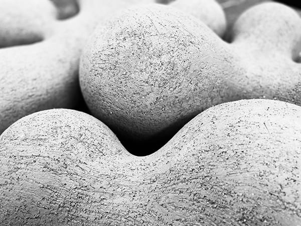 Die introspectieve wandelingen leiden haar naar zachte, abstracte vormen, volledig in curven. Ze creëert stapelingen van concaaf en convex, van leegte en volheid, aanwezigheid en afwezigheid, licht en schaduw, spanningen… De figuur dringt zich aan haar op.
