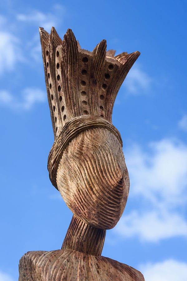 Kanwa, ritueel meester uit Indonesië, met grote kennis van de voorouderlijke technieken, werkt in hout, brons en schildert.