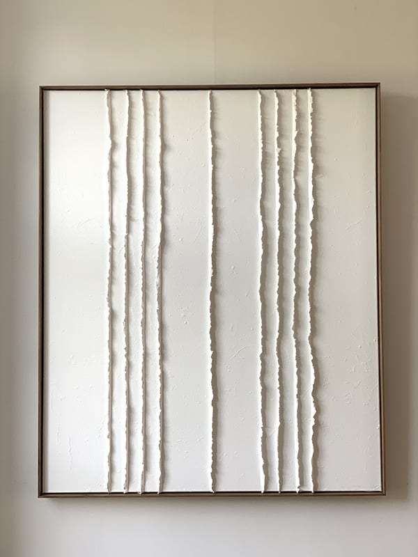 Sophie De Zutter onderzoekt materie, tijd en het evenwicht tussen kracht en breekbaarheid via handgeschept papier, klei en pigmenten. Haar intuïtieve aanpak brengt organische werken voort, getekend door sporen van het levende. Barsten, texturen en nuances vertellen een zoektocht naar authenticiteit, stilte en aanwezigheid. Verankerd in een sobere, natuurlijke esthetiek is haar praktijk een ode aan de eenvoud, een uitnodiging om te vertragen en het wezenlijke te contempleren.